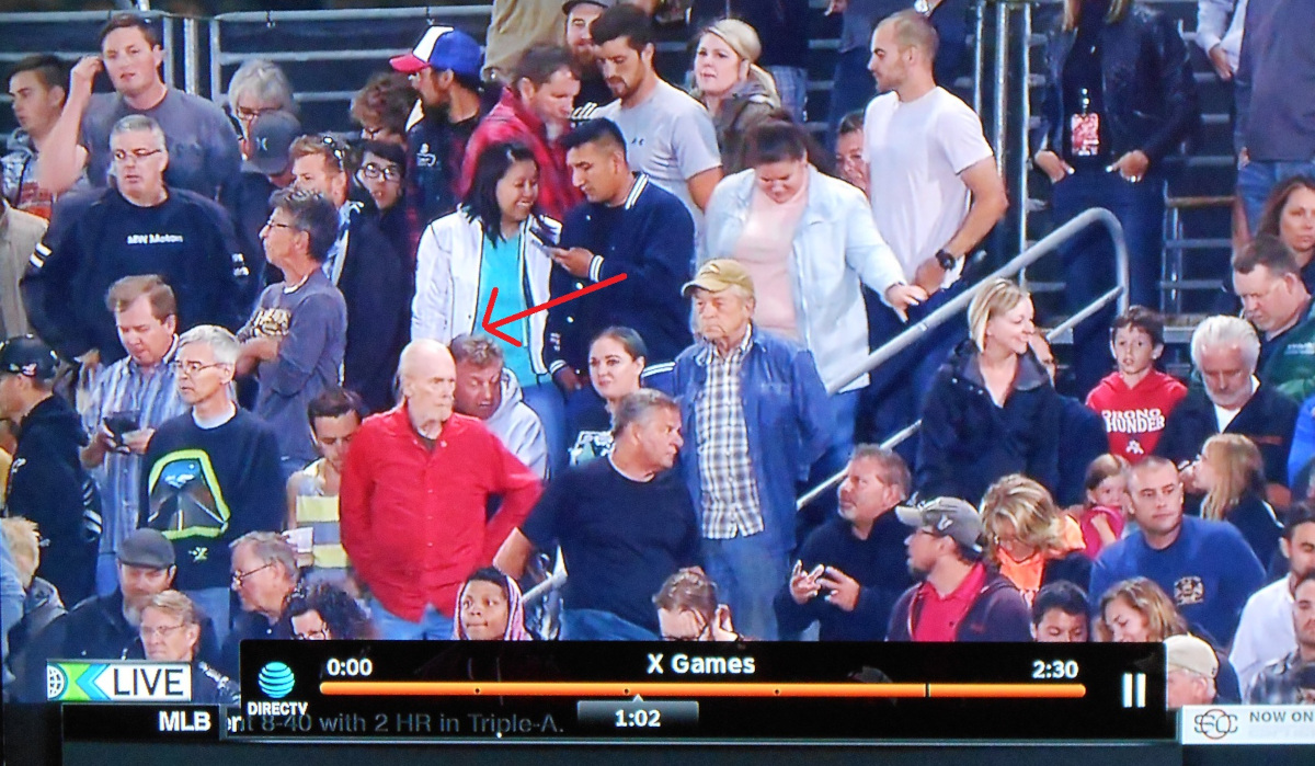 When Dick heard that my friend saw us briefly on the TV coverage, he went through the recording until he found us and grabbed this screenshot