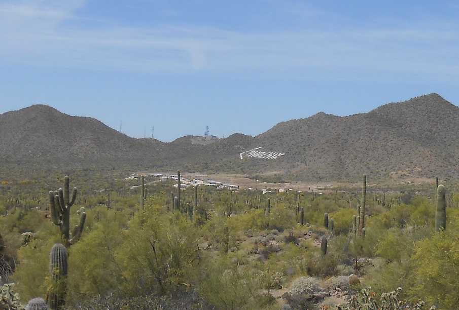 A relatively close look at the famous (infamous?) Phoenix sign. The gun range is in front of it.