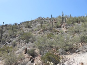 find a wash area and started there. The hill was very steep, and although I saw a few things that looked like they may be trails, none of them were. It was a bit