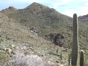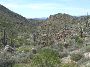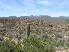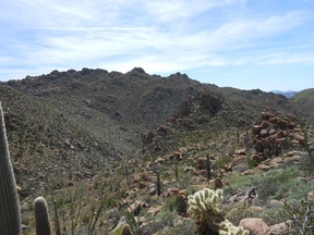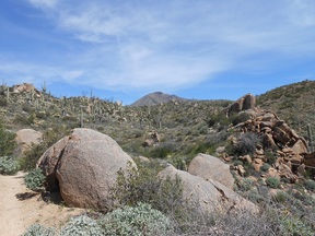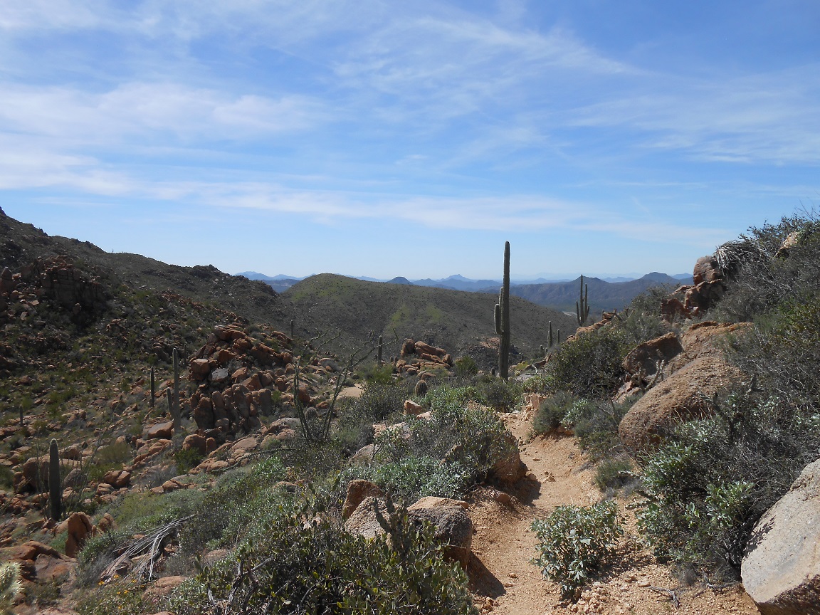 Ballantine trail climbs a bit steeper, and it gets more and more rocky. The terrain started reminding me of the Superstitions, although I think