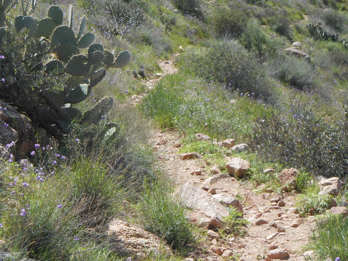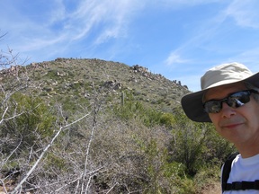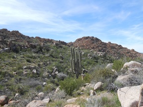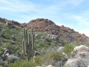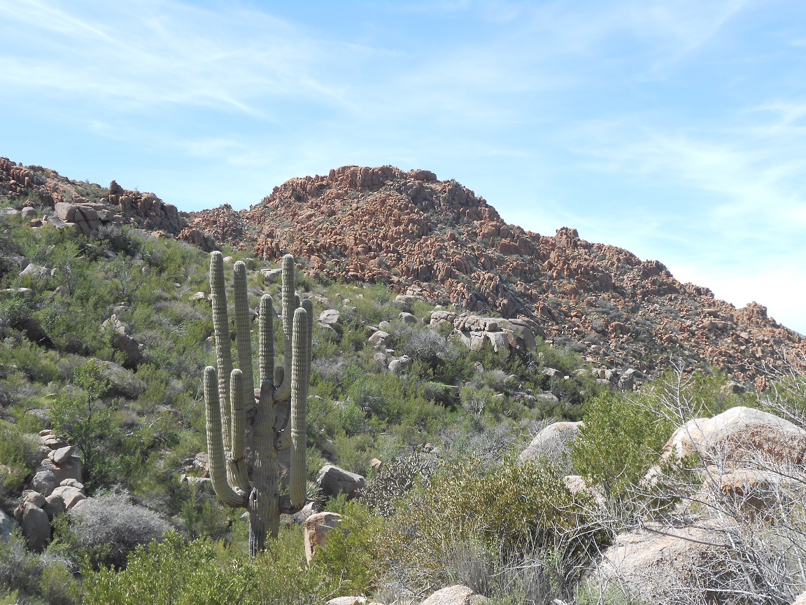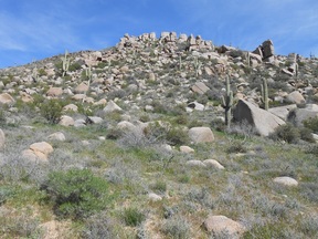 At this point, I turned back and notice some of the rough rocks often seen in parts of the Superstitions. The last picture is going back on the north